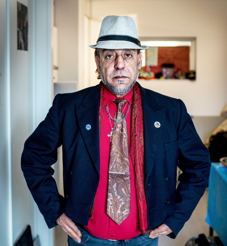 Rachid (54) draagt een bordeauxrood pak met bijpassende stropdas en een subtiel zijden sjaaltje. ,,Een beetje kleur op deze grijze dag kan geen kwaad.” Een flink deel van zijn woonkamer, in een beschermd wonen locatie van LIMOR, wordt in beslag genomen door een kledingkast waarin alle kledingstukken zorgvuldig zijn opgevouwen. Op de vloer naast de bank prijkt een uitgebreide collectie schoenen. Rachid past zijn kleding graag aan op de stemming van de dag.